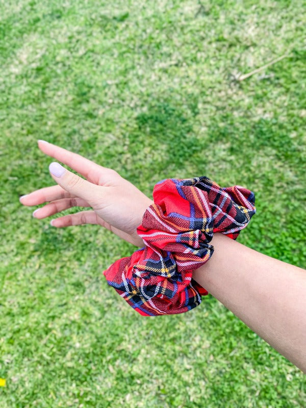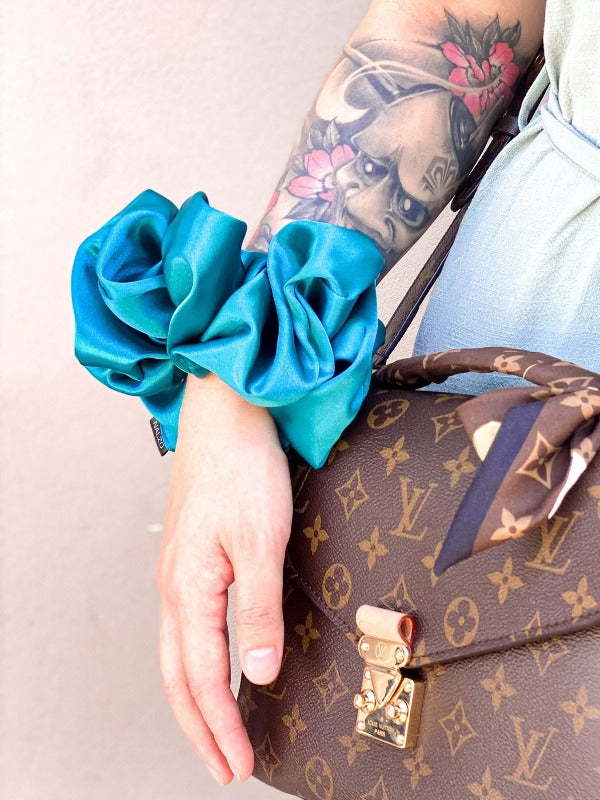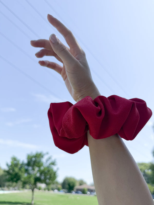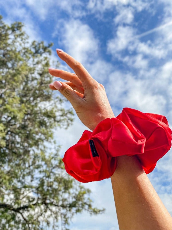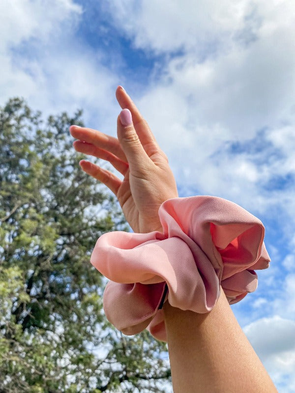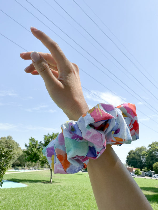 Not only does it bring that instant pop of colour and personality to your overall fit, but it also perfectly matches any hairstyle you would like to achieve. Whether you want your hair in a pony, braid, or bun, it's no biggie to an oversized scrunchie.